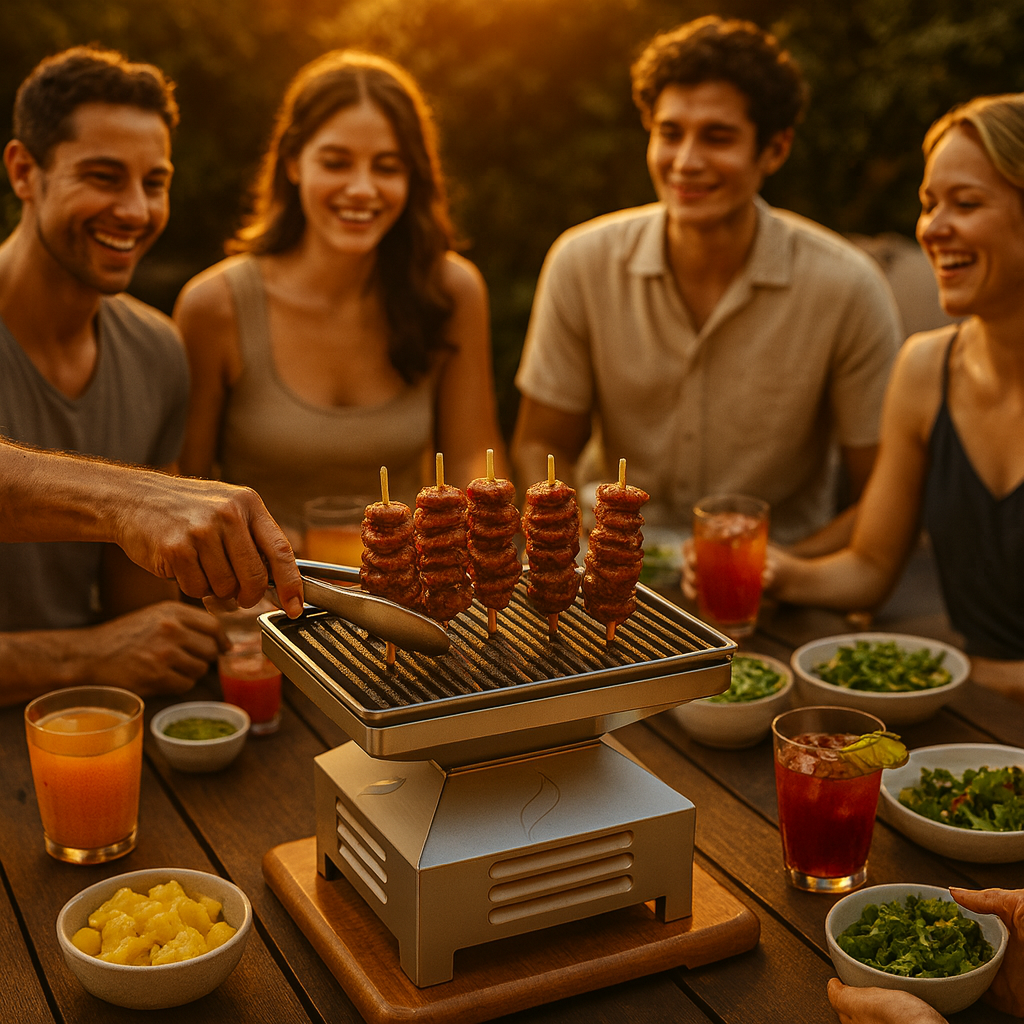 Brochetas de camarón al ajillo y carbón